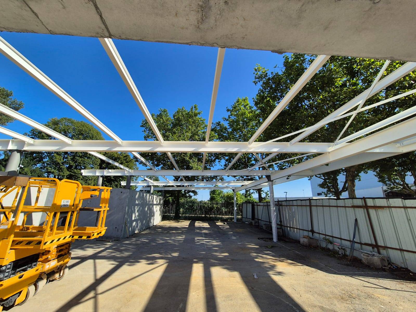 Dans le cadre de ce projet, ASMT utilise différents types de profilés, comme les poutres HEA et HEB, ainsi que les pannes IPE et UPN. L’achèvement du chantier a mobilisé l’ensemble de l’équipe pour répondre à la demande de réactivité du client, permettant la fabrication, le traitement et la pose de plus de 15 tonnes de matériaux en seulement 8 semaines.