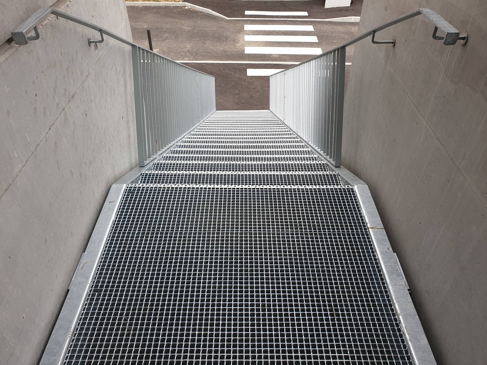 ASMT Industrie est intervenu sur Romans sur Isère, dans un CHU, pour la fabrication et la pose d'un escalier technique en caillebotis de 9m de long.