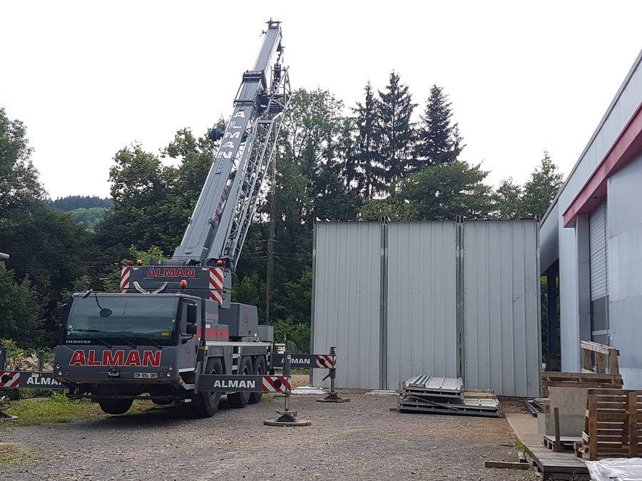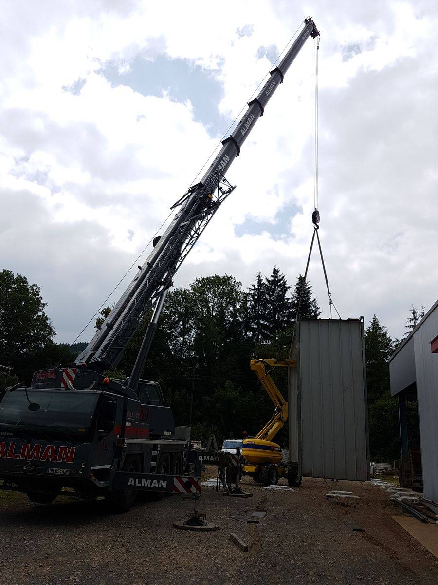 4 pans dressés, posés et assemblés sur place avec une pose par une grue 34T.