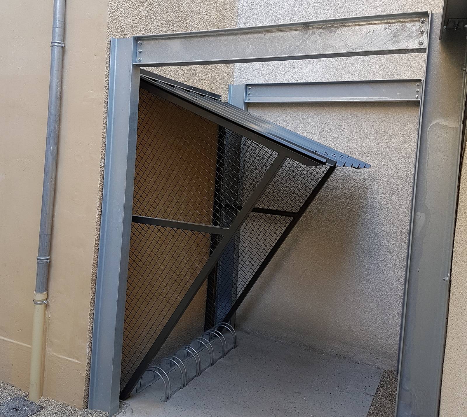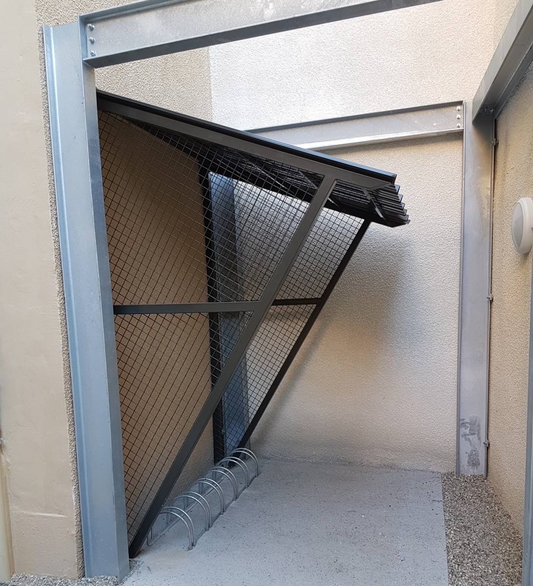 Selon le croquis de l'architecte du projet, ASMT Industrie a réalisé et posé ces 2 abris vélo et poubelle pour un immeuble dans la ville de Lyon.